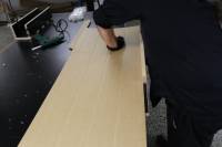 - Place prepared sheet (creased in last operation) onto CNC bed (ensure square on bed)