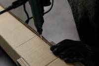 - Folding Jig (one on side of the table and Glueing jig (on the other side) screwed down to a bench.
