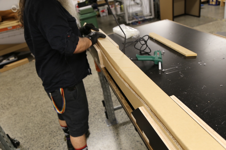 Following on from Dr Peter Musk's preproduction trials with with square beams we have tweaked the design and established a fabrication prcess to pre-make square section beams as the key internal structural component for the construction of the Grumpus sculptural installations.