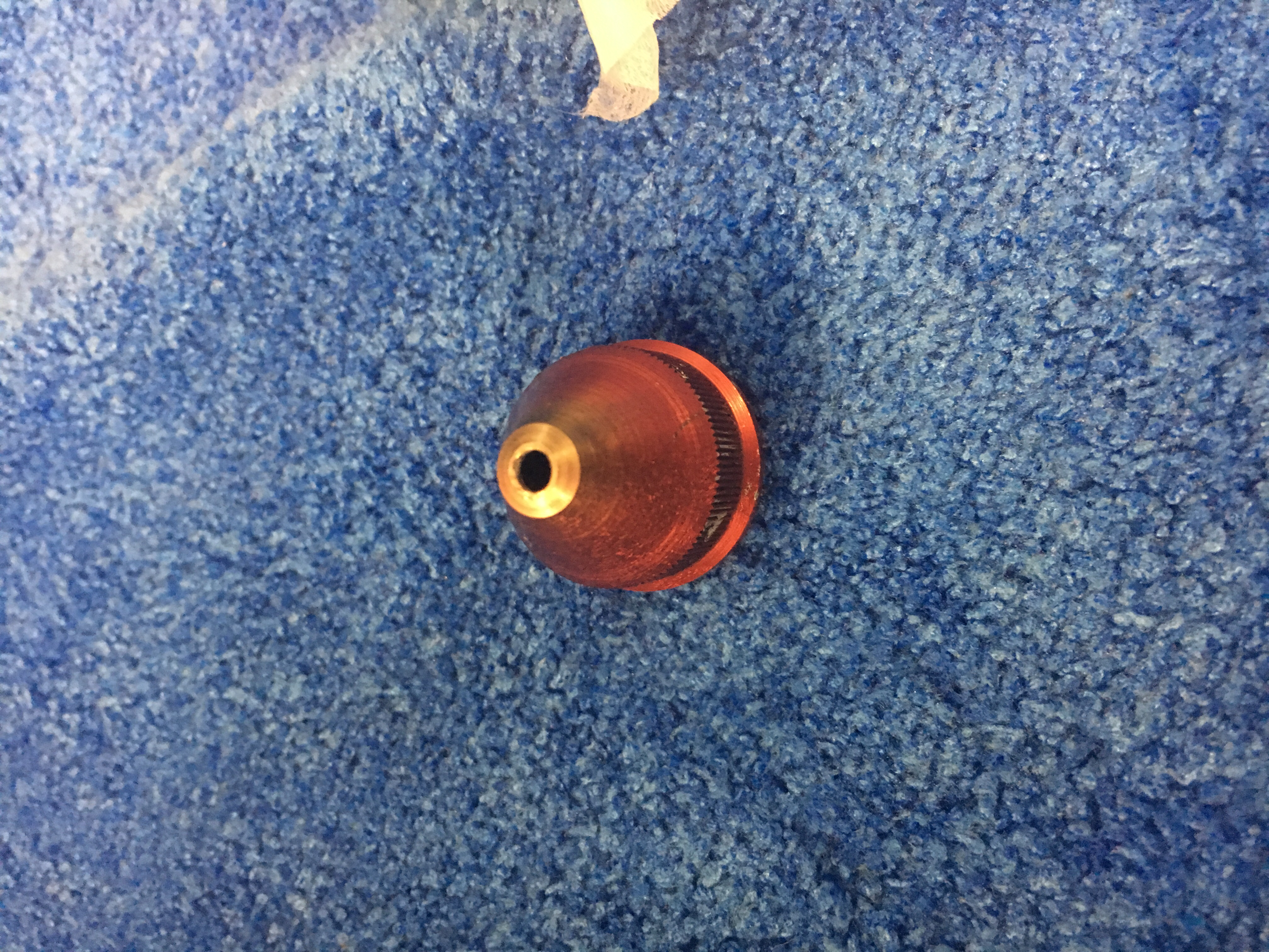 The only explanation i can give is that perhaps the trusted participant that cleaned the Laser after their session accidently or unknowingly reassembled the Lense/retaining collar upside down. (Lense on top of collar for 2“; lense Collar on top of Lense for 1.5” lense) This would have put the laser beam badly out of focus and directed energy at the nozzle which is now heat affected.