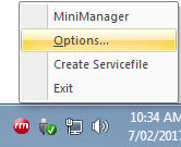 Right click and select Options…' to change options.