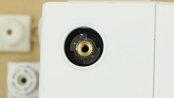 The spur is made of brass and the internal gear is plastic. This means the brass gear grinds the plastic until the arm servo falls off, requiring a replacement shoulder mount.