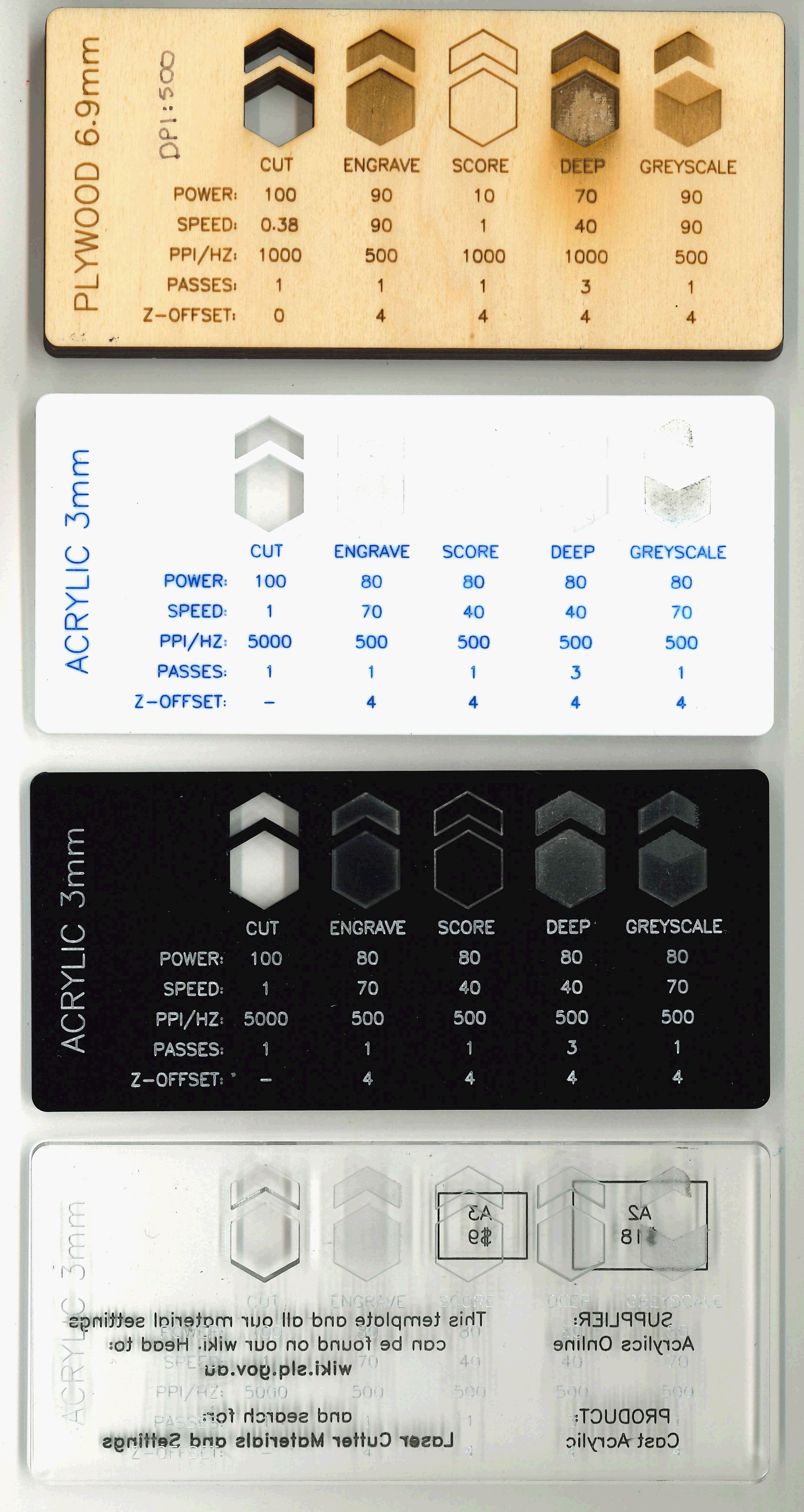 Laser Cutter / Engraver Materials and Settings (trotec Speedy 300)