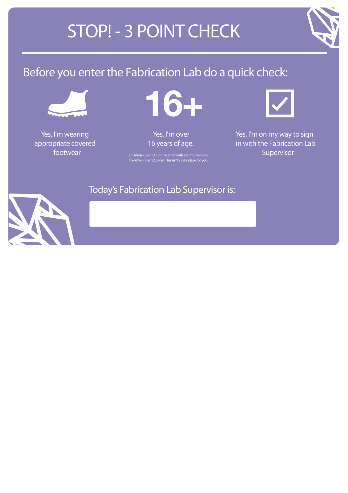 The Signage was used in the fabrication Lab in 2015 before the refurbishment.