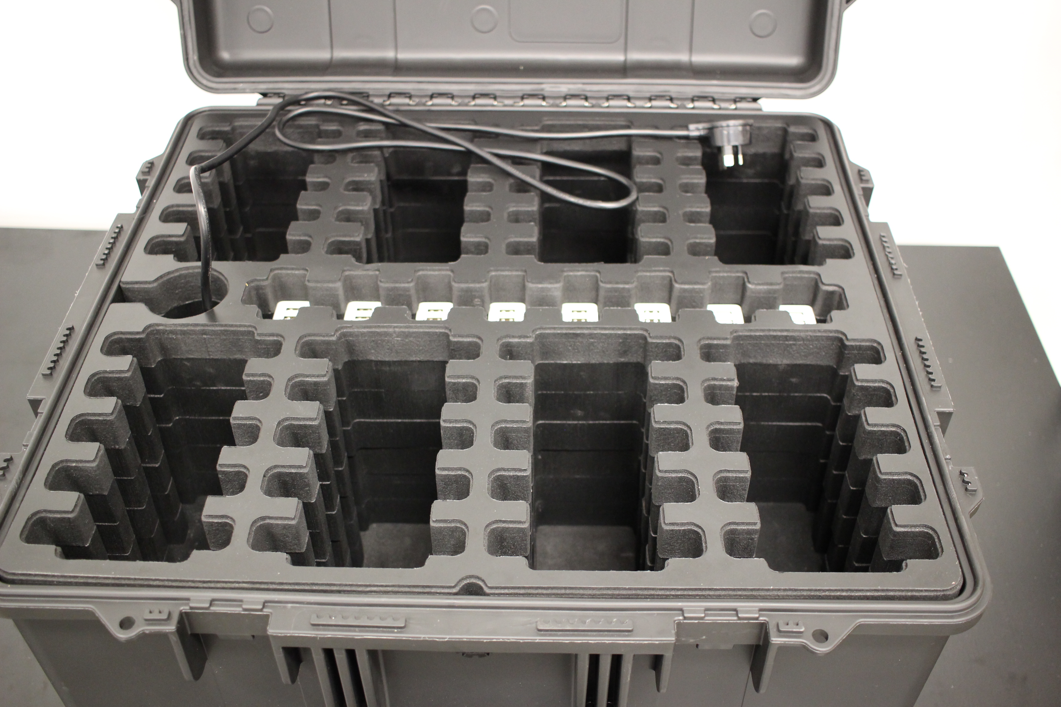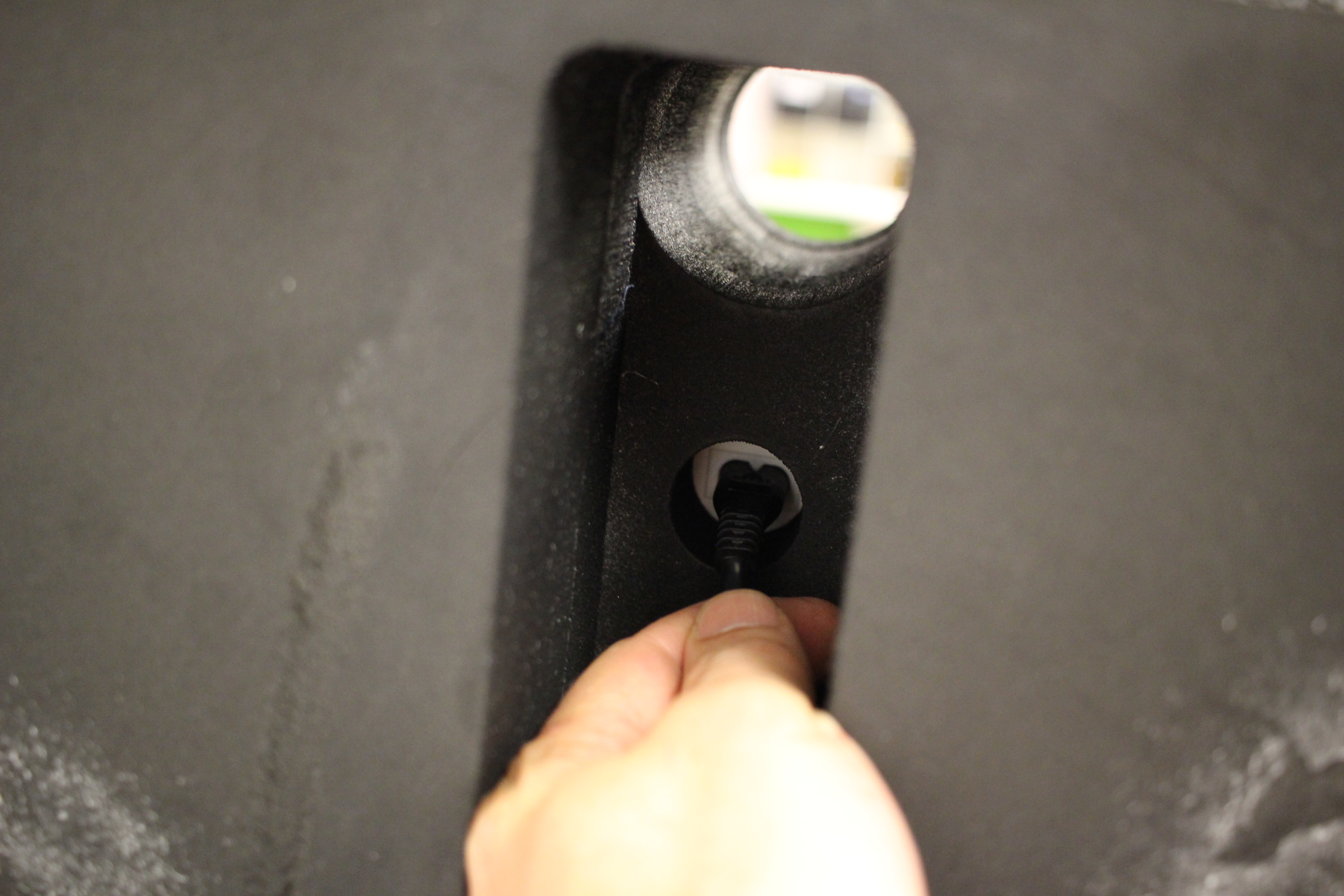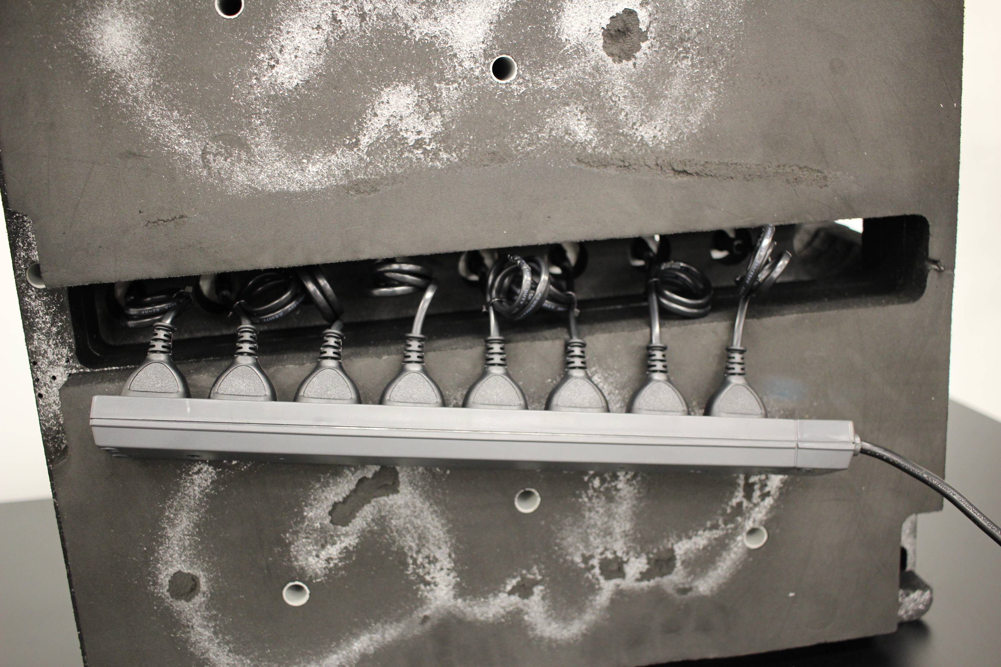 Wedge the powerboard into the bottom of the foam - make sure the powerboard lead is fed up through the hole.