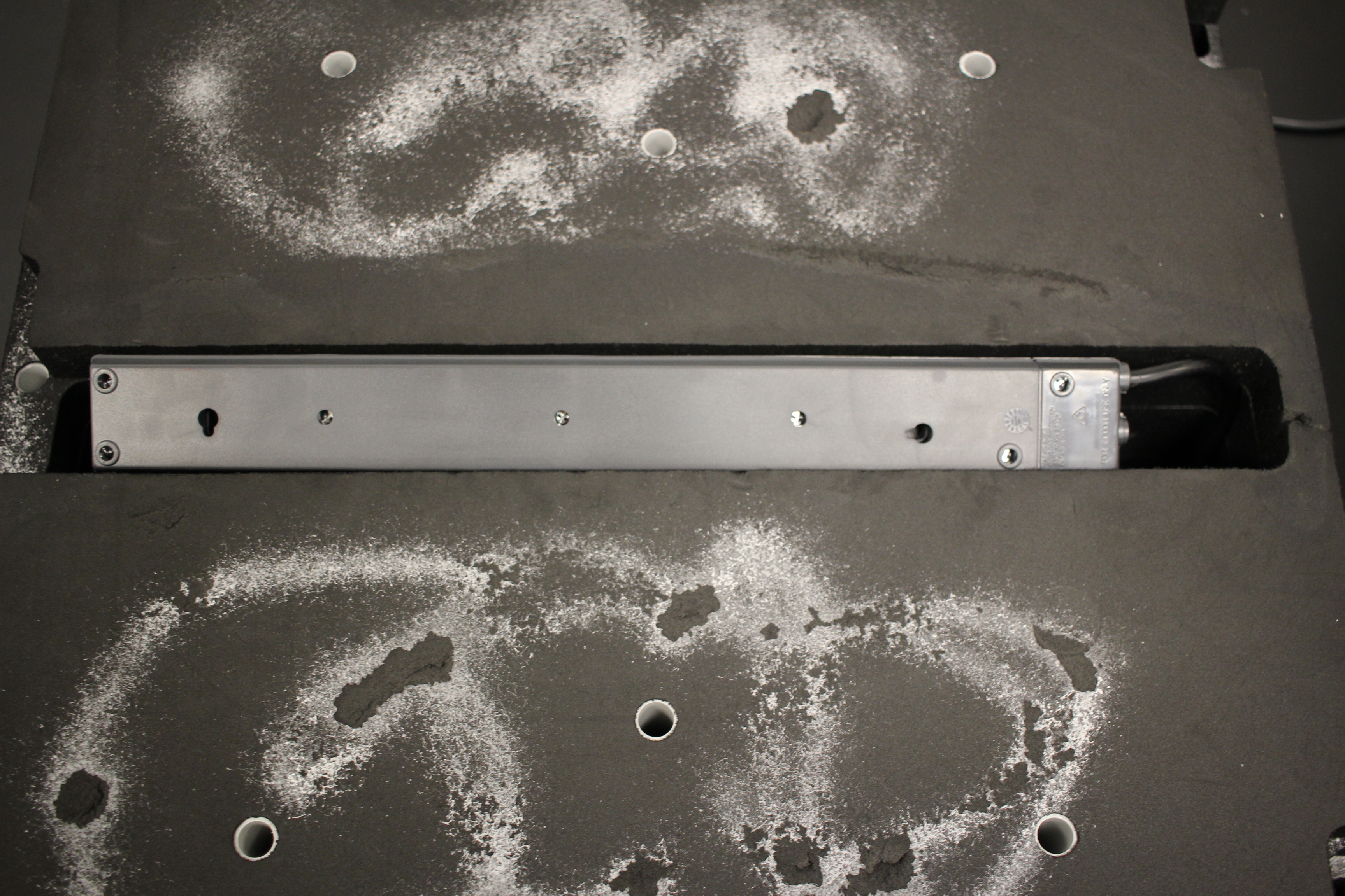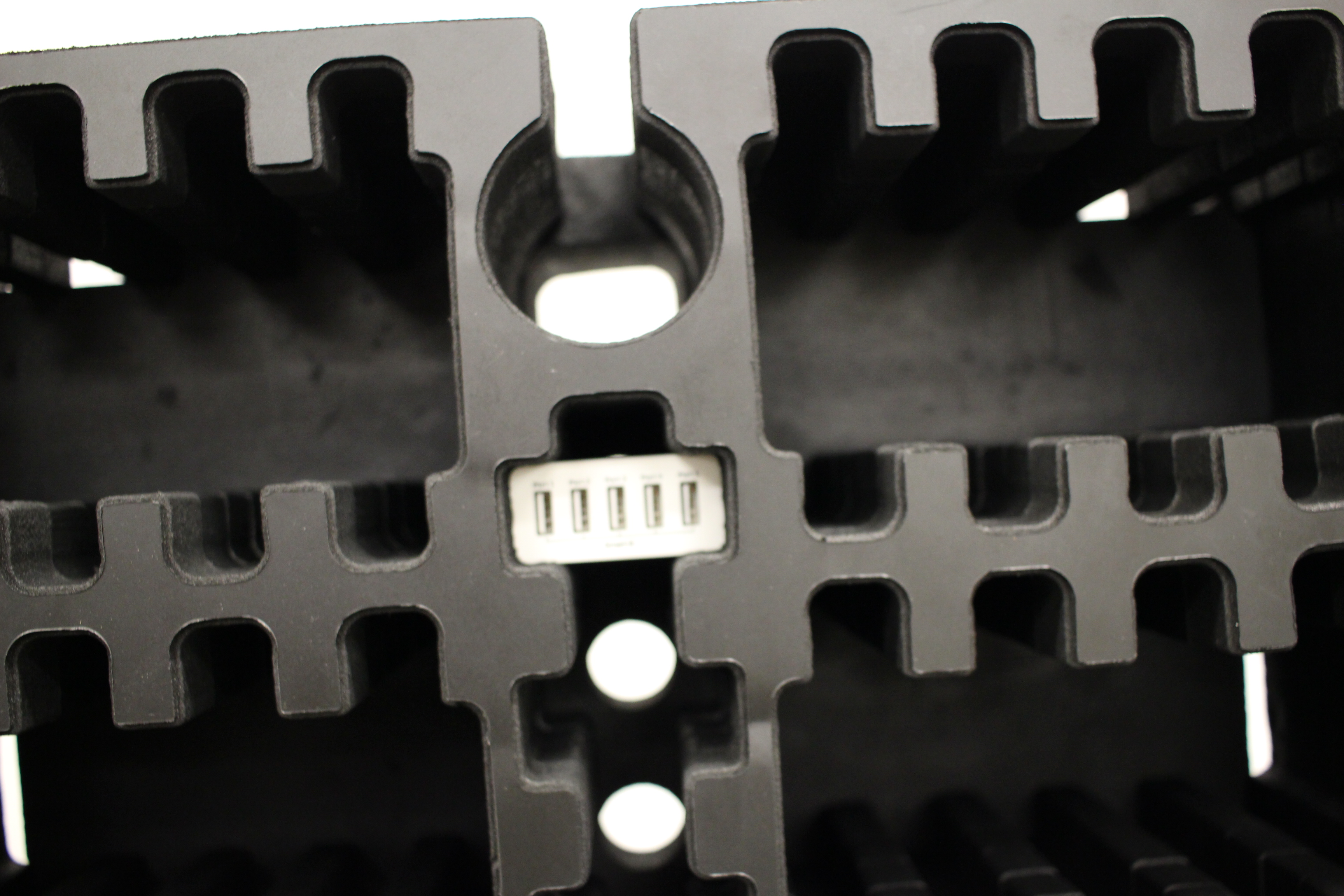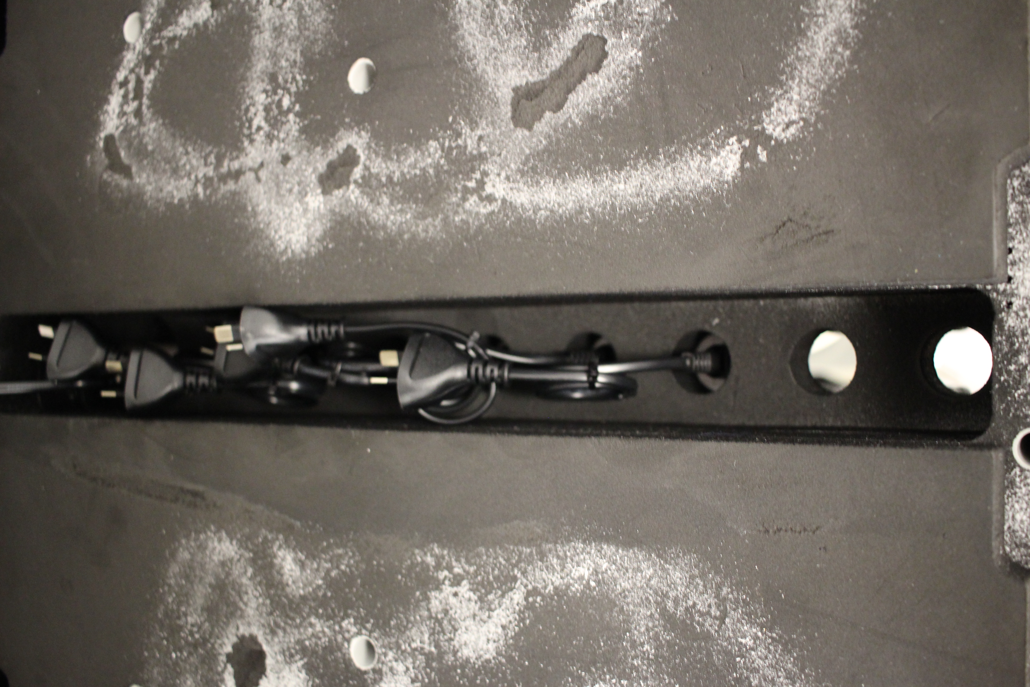 Wedge the powerboard into the bottom of the foam - make sure the powerboard lead is fed up through the hole.