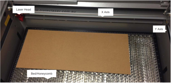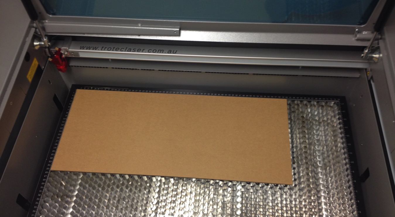 Position the laser at the top left of the material to be cut. Do NOT adjust the height….