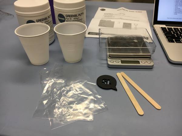 3. guestimate (in mL) what volume casting silicone you will require. Half this and then add a bit for good luck.