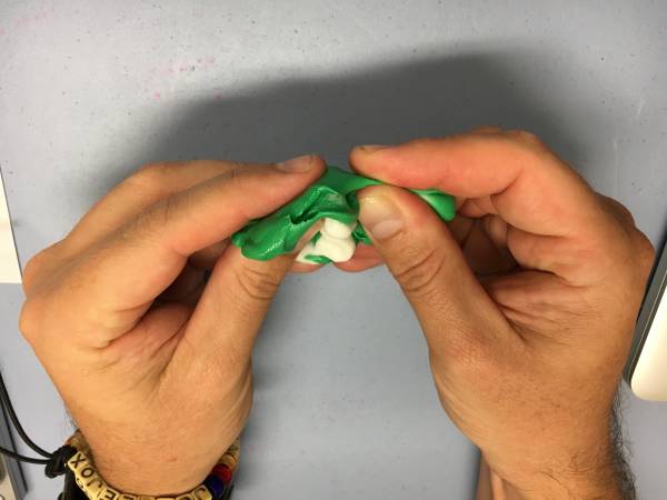 7. Mash the two parts together until they are mixed - if you can see streaks of white in the mix you need to keep mashing. You have up 6 min working time, so you need to get it mixed and make your impression in this time.