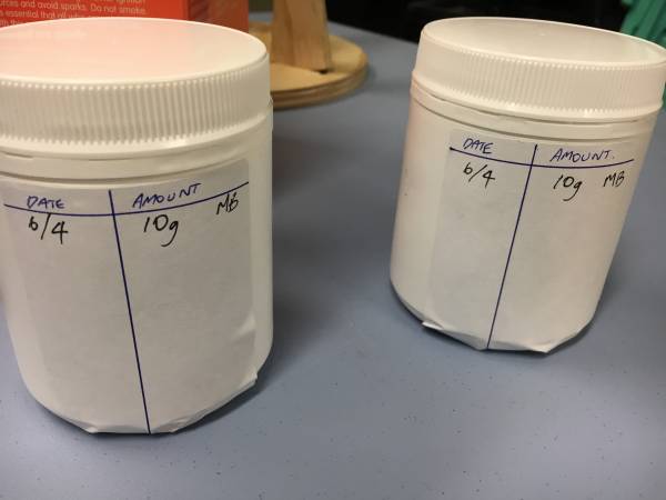 5. Record the amount taken from stock (10g) the date and your initials. Ensure lids are resealed