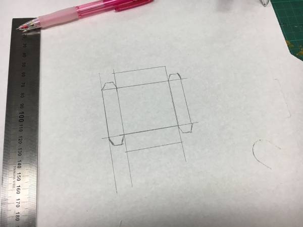 2. Now draw the sides of you box radiating out from the straight sides of the base. Ensure you make these sides deep enough to contain enough silicone to cover your form. handy hint the box needs to be a little deeper that the object you are casting ;-)