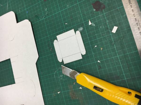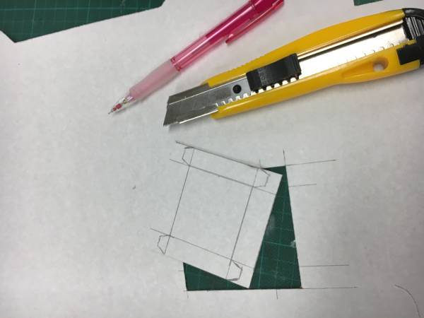 3. Now carefull score (slightly cut) the fold lines of your box (straight lines round the base and fold lines for flaps)