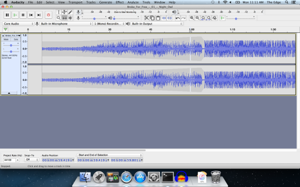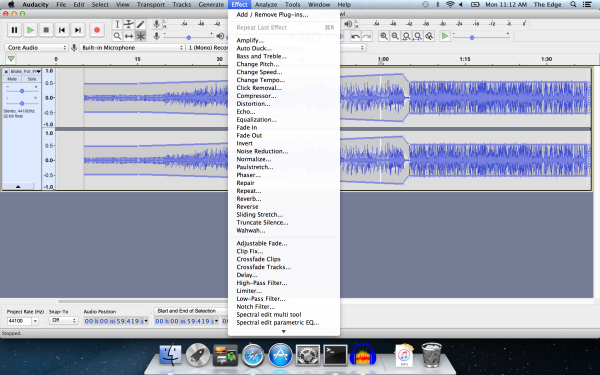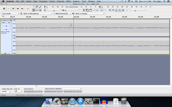 All of the iMacs in the Digital Media Lab and also the HP laptops available for use in the Fabrication Lab have Audacity installed. Let’s go to our application folder or search function to find and open the program.