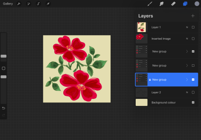 If you have multiple different drawings/graphics or elements, it is a good idea to group them all together. You can do this by swiping all the layers and clicking the group option in the layers menu.