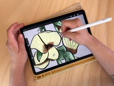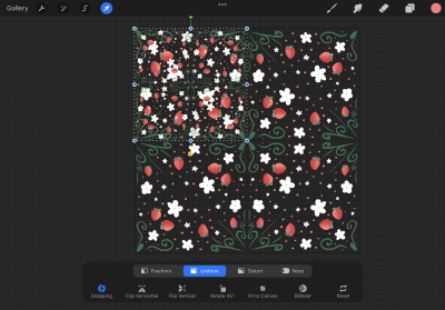 Once you have finished creating an illustration you are happy with, we can turn this into a repeating title to make our seamless pattern. Turn off the drawing guide for a moment, go to Actions and toggle it off under the canvas option.