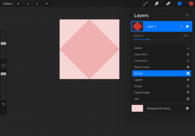 Next, we are going to change the diamond layer to multiply and lower the opacity down to under 20%. The diamond layer is going to be a guide, and everything will be drawn within this diamond shape. Lock the diamond shape by swiping to the right (on the layer) and clicking the lock button.