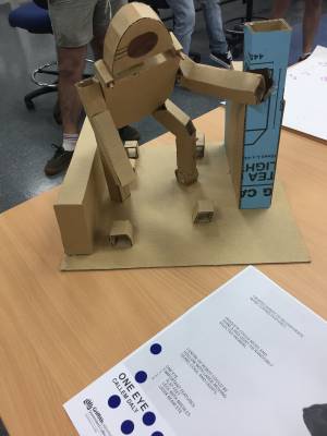 The Design Journey: The process for QCA Design students was to do a solo exploration of the Imagined Things in the well, select a favourite and then create a design pitch and scale model to present to their peers. Pitches were then voted on and One Eye was selected as the Imagined thing to fabricate! Students then split into groups to design and fabricate in sections. Students used digital design tools, such as SolidWorks, Sketch Up and AutoCAD to 3D model and design One Eye and the Cityscape.