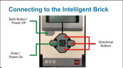 The below image explains the EV3 brick or 'brain' and what functions each button have.
