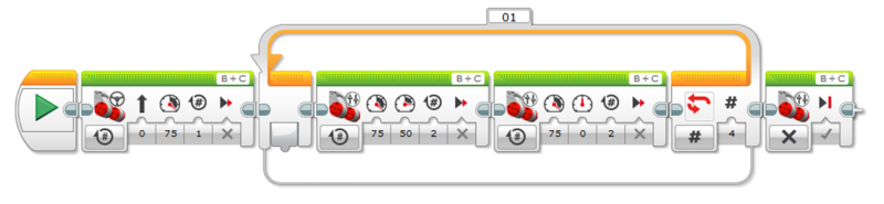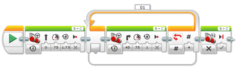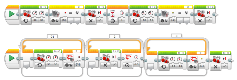 The second homework task is to: Build a code to make the robot drive forward until it can read the colour red (starting at black on the training mat); if it reads red stop, pause and drive backwards until it reads the colour yellow, stop on yellow.
