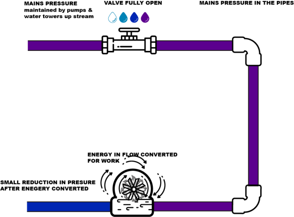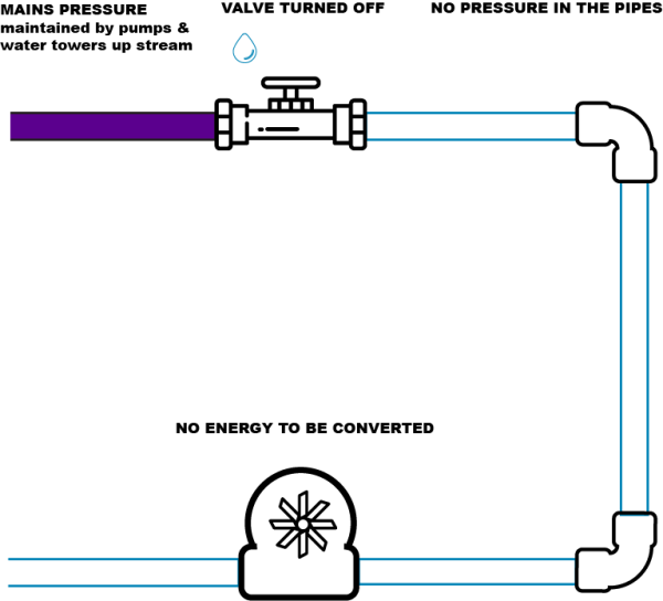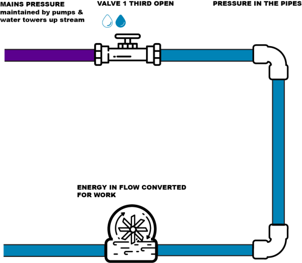 Remember before when we were talking about pipes I said it was all on the flat and all powered by the pressure in pipes?