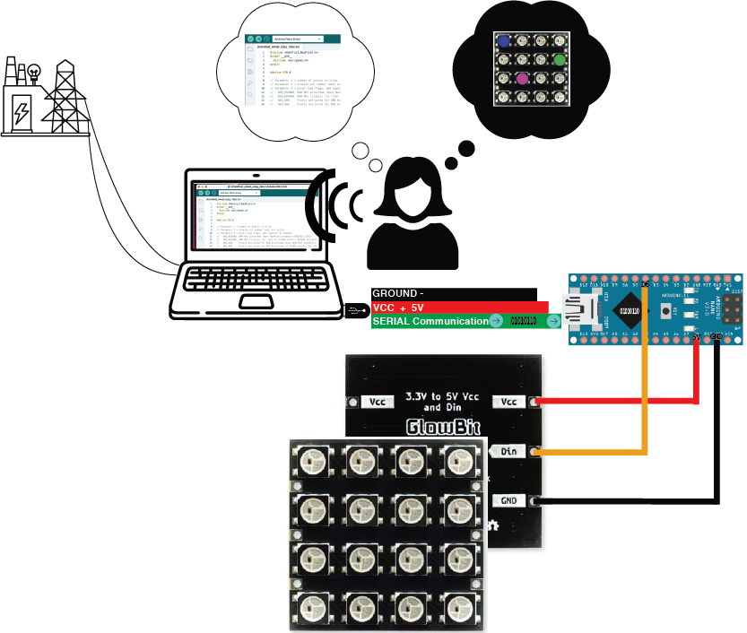 little computer script that we'll upload to the arduino will say which led will turn on when for how long in different patterns.