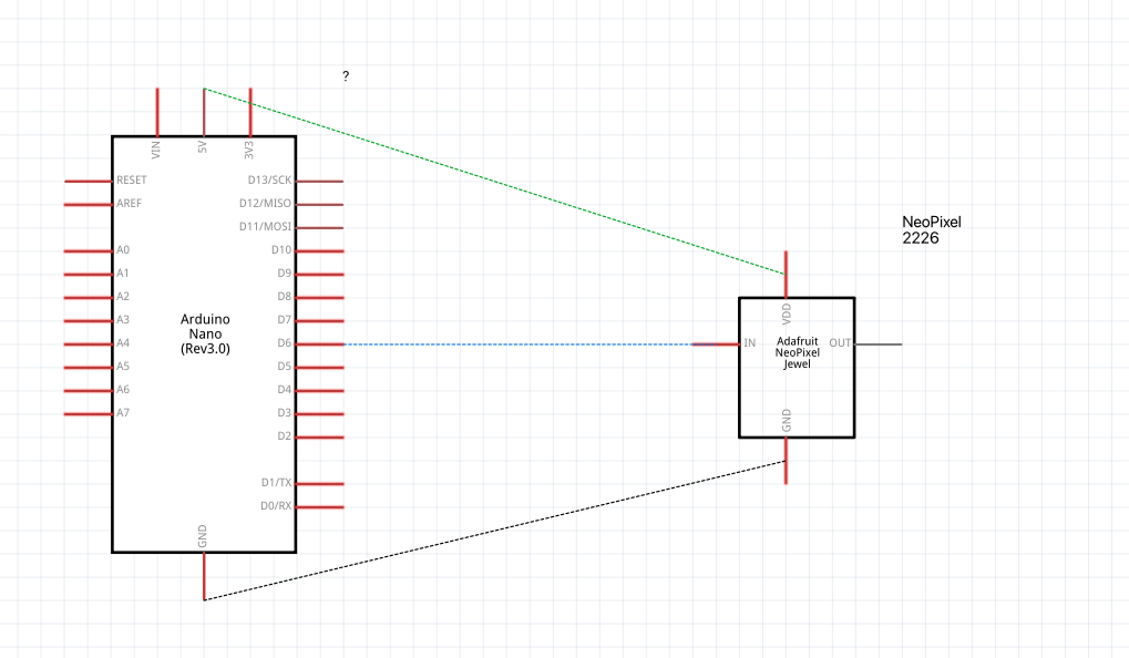 5v positive into the arduino to power the arduino and power the all the LEDs (neopixels )»>