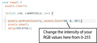 Neopixel_simple Adafruit NeoPixel Adds one green pixel at a time change the colours by adding