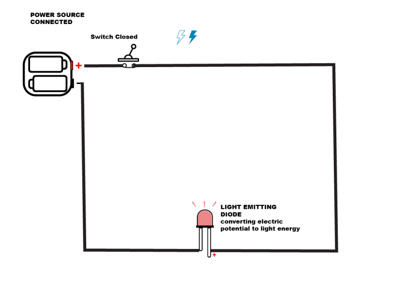 • we convert electric charge to heat - pass electricity thru an LED which excites semi conductor material in that releases photons (light)