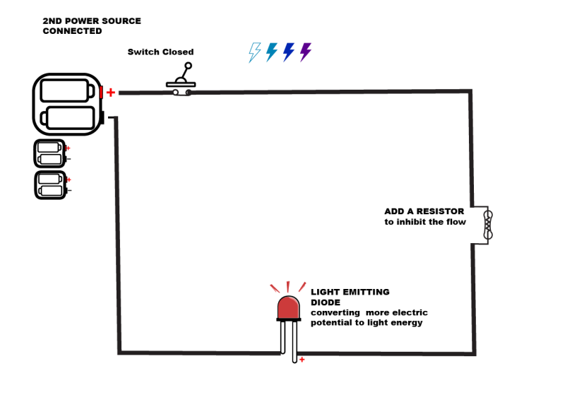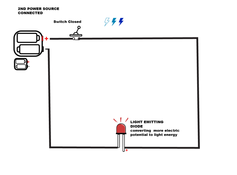 1. Hook up a battery to a LED by placing the legs of a LED over the 2 faces of a coin cell ( explain the Polarity of LED, explain polarity of Battery )