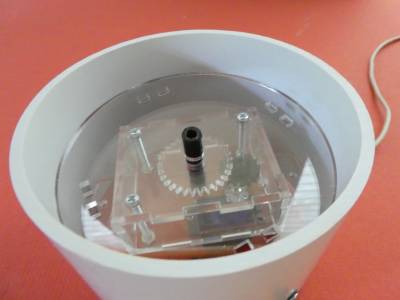 Before sealing the dome in place, sort out the display elements, and glue them in place. This is a last chance to alter the height of the shaft - you can cut a new one and insert it onto the gearbox through the hole in the floor (just don't push too hard, or the gearbox might be displaced).