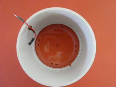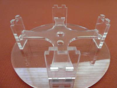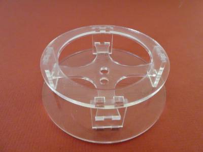 You now need to hold the floor in place inside the base upside down while you glue in the supporting circlip. If your floor is to be flush with the top of the base, then just put the base on a level surface, and push the acrylic floor to the bottom. If you want the floor a bit below the top of the base then putting something on a level surface to support the floor at the required height inside the base will help if you levitation skills are undeveloped. Cutting a few discs of cardboard and stacking them up is an easy way to do this - just try to make them big enough to support the whole floor, and prevent wobbling.
