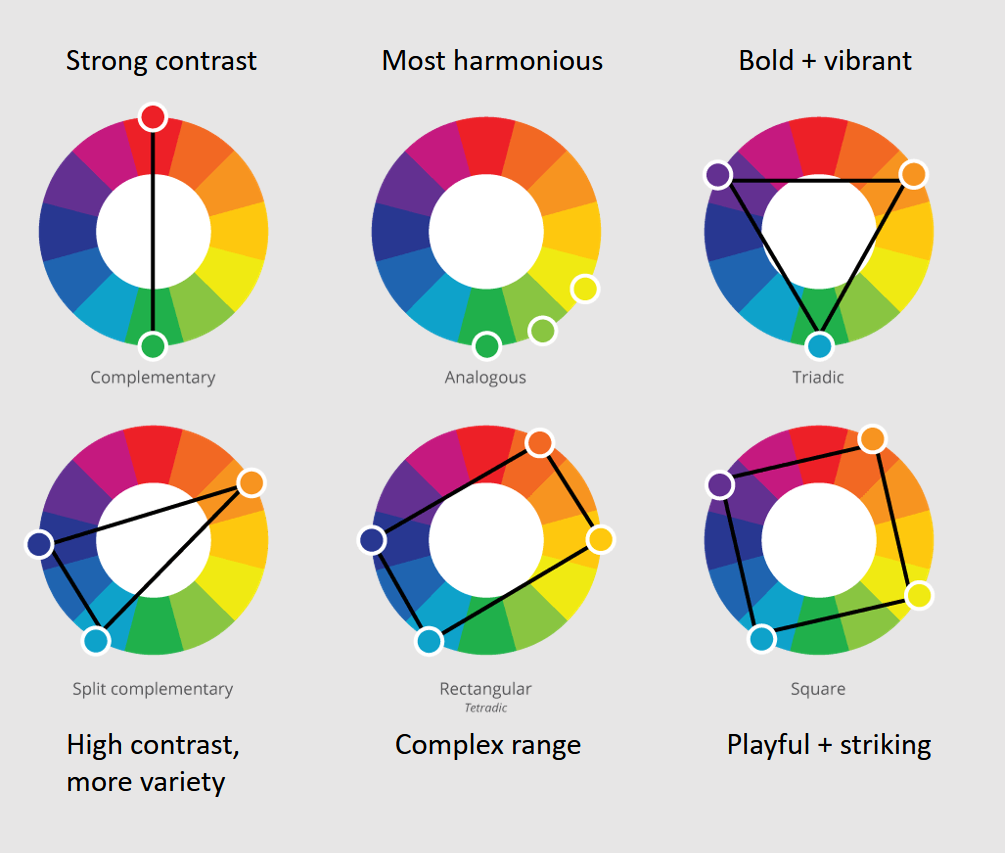 Deciding on your colour scheme can affect how its perceived through its mood and how people feel about it. The colour wheel can be divided into primary, secondary and tertiary colours.