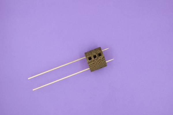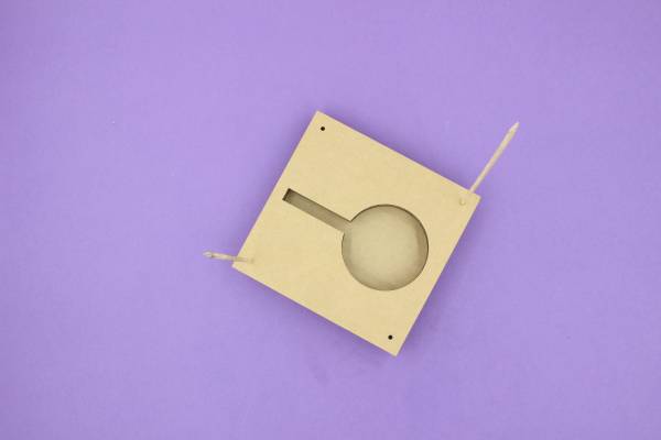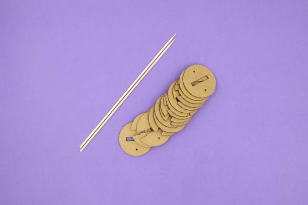 We'll start with putting our plug together. Each segment has a number on the bottom front side. Put the plug together with the help of a couple of skewers adding each layer one-by-one (There are 17 layers in total). Make sure that the skewer holes in your cardboard segments are punched out. insert the skewers from back to front starting with the last layer, layer 17.
