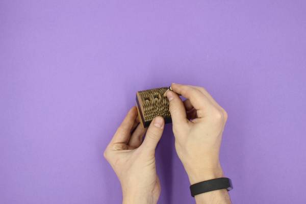 First of all grab your layer with the hasp and carefully remove it. We are attaching the other two magnets to the hasp. Make sure the polarity matches the polarity of the magnets in the plug. An easy way to do this is to put your plug in the white tube (to make the removal of magnets easier) and let the magnets snap together on the outside. This way you'll know which side should point in or out. Make sure the magnets in the hasp don't stick out too much and add a piece of tape to keep it in place. Don't use too much as it will add unwanted friction. Put the hasp back into it's layer before the next step.