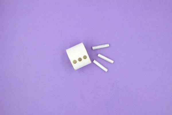 We are going to insert the rings into each of our plug's holes. This is going to keep our key pins from dropping or getting pushed out into the key hole. Make sure you push them all the way in (5mm or so), some force might be needed but make sure you don't damage the cardboard holding the ring. The rings should lay flat in the holes.