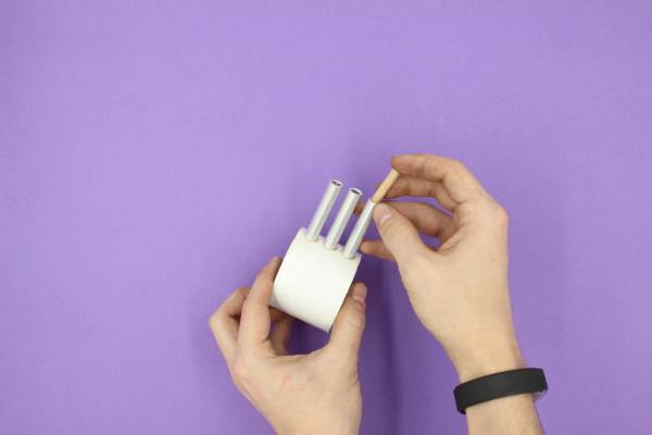 Snip off the ends of the skewers (make sure you hold on to the bit you're cutting so it doesn't fly off!)