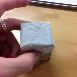 2. Wrap your paper over the exposed side of the inner box. -Tip- wrap it similarly to a gift at the corners to make the next step easier and ensure an even spread of your paper. maybe use some Scotch Tape to hold in place?