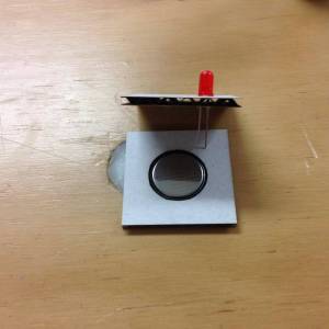 3. Bend the short contact of the LED up to almost flush with the E panel. Attach the F panel to the bottom of the E panel and ensure that the long contact of the LED slips inside the slot next to the coin battery.
