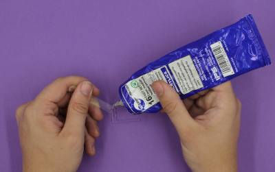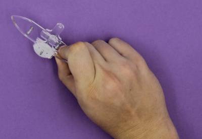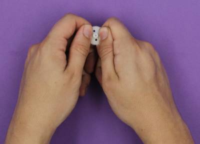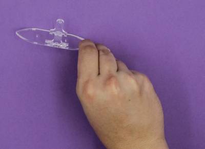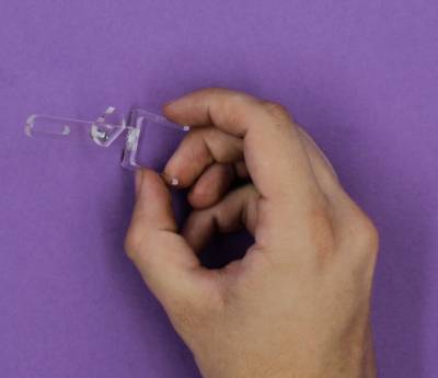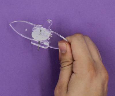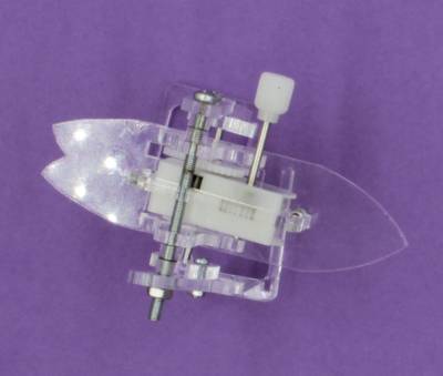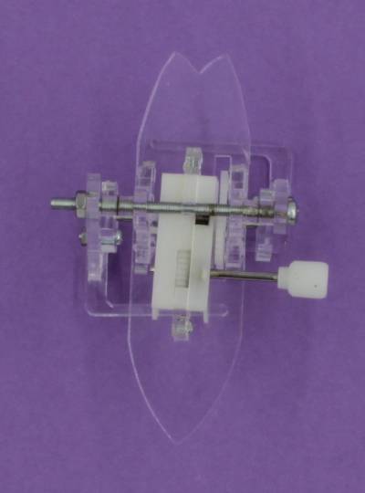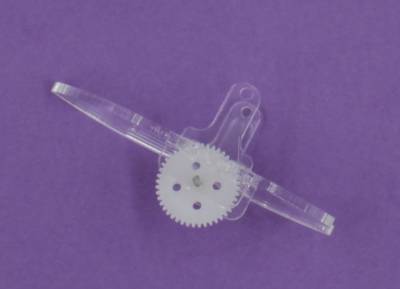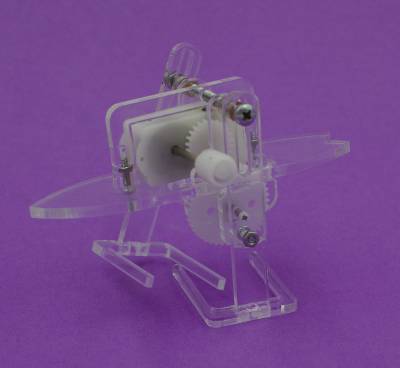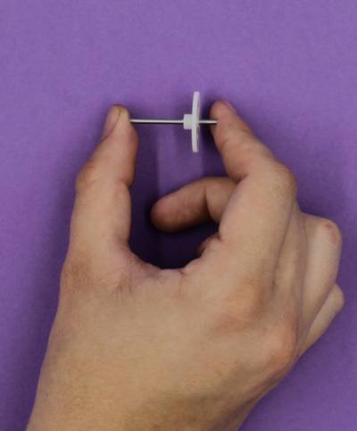 Push the shaft (l) through the centre of the large gear (i) being extra careful not to push the shaft through your thumb