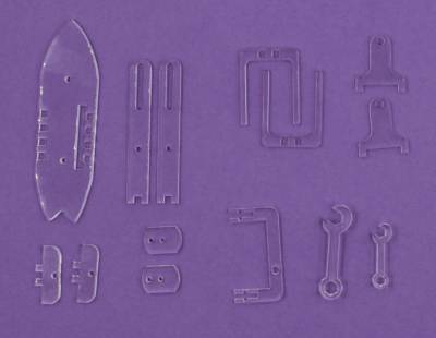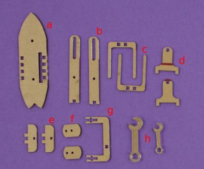 Put the two remaining screws (j) up through the body with the nuts on the side of the robot with the bell shaped pieces