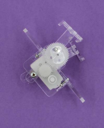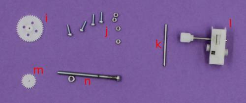 Attach the small gear (m) to the motor (l) carefully as the shaft is keyed with a D shape on the opposite side to the winder