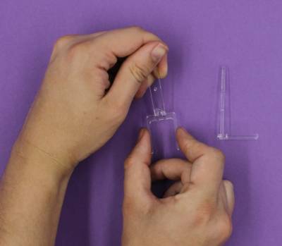 Place the D shaped pieces (e) on the shaft and apply a small amount of glue to the tabs