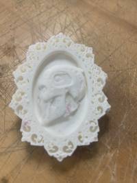 - demo using precut laser badge backs/ cameo frames.