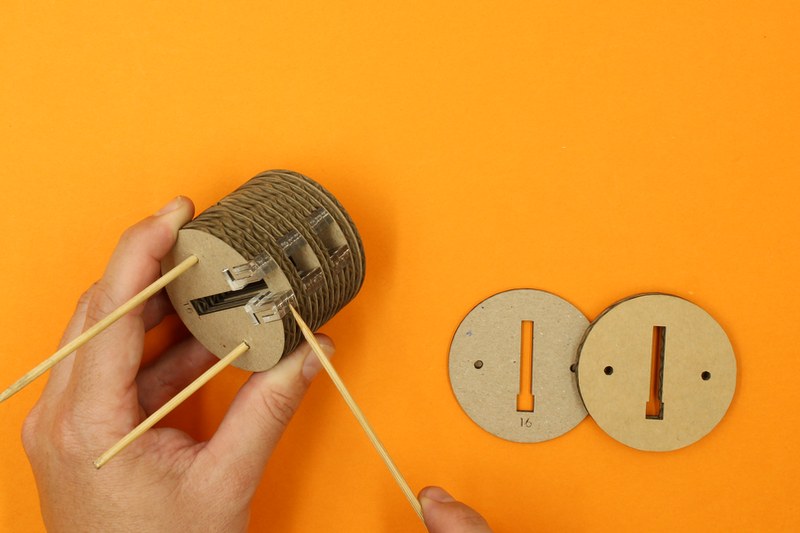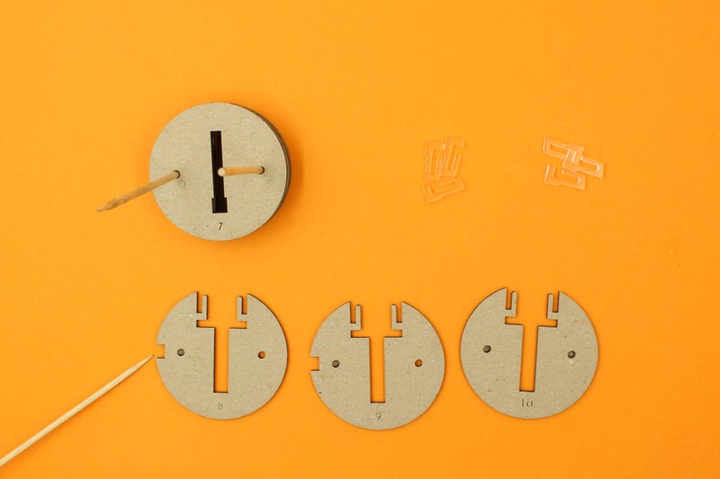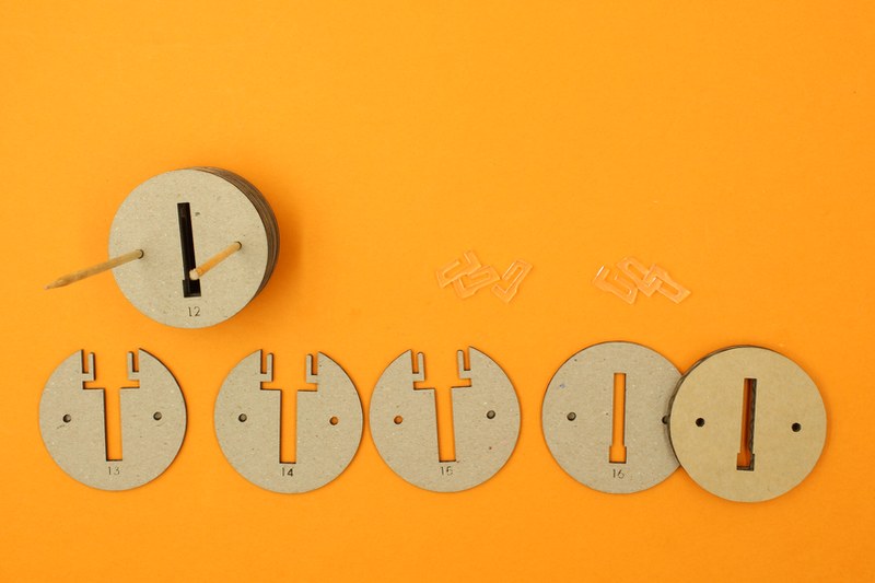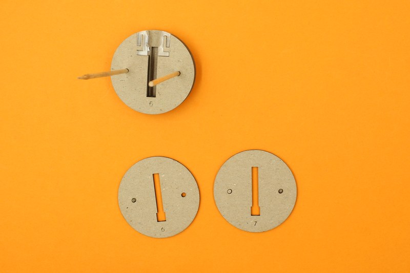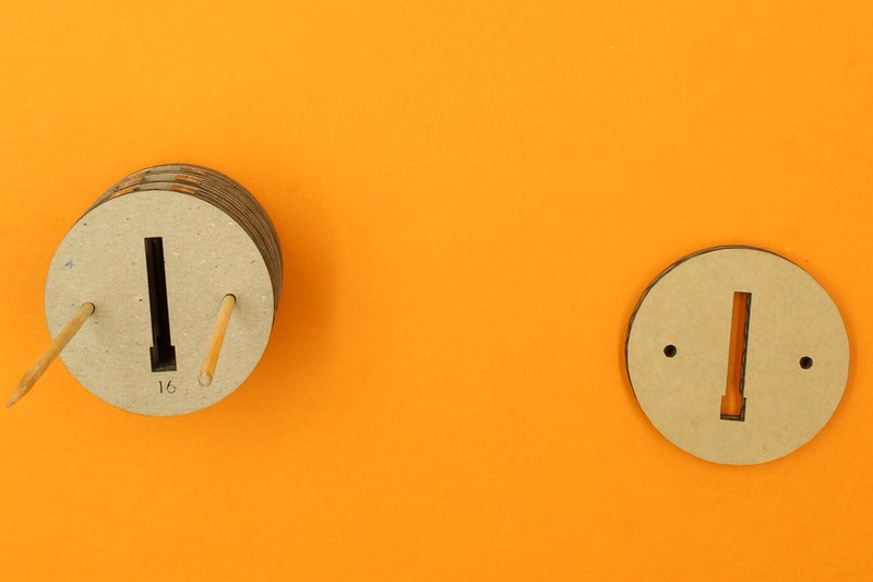 We'll start by putting our plug together. Before we start, make sure that the skewer holes in your cardboard segments are punched out, and note each plate has a number on the bottom front side.