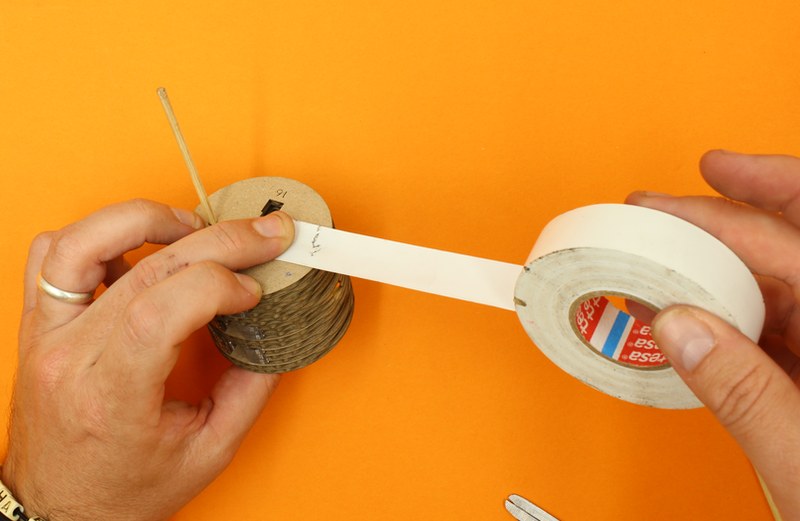 Start the tape next to the middle hole, wrap it around the sleeve and trim the tape near the other side of the hole