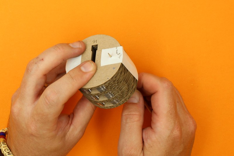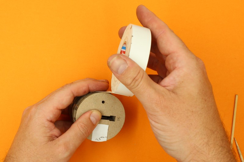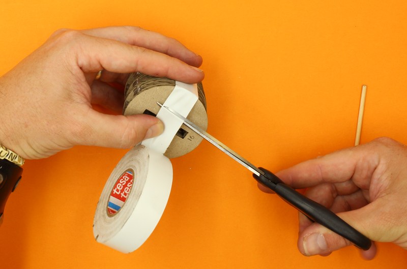 First, add a strip of tape around the circumference of the Sleeve (postal tube).