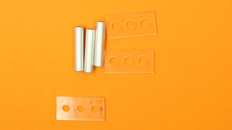 - 2x plastic supports with regular size holes (same diameter as the tubes)