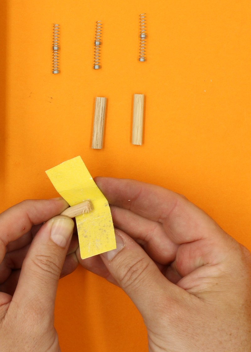 First deburr the set pins using the piece of sandpaper to ensure that they move freely in their chambers